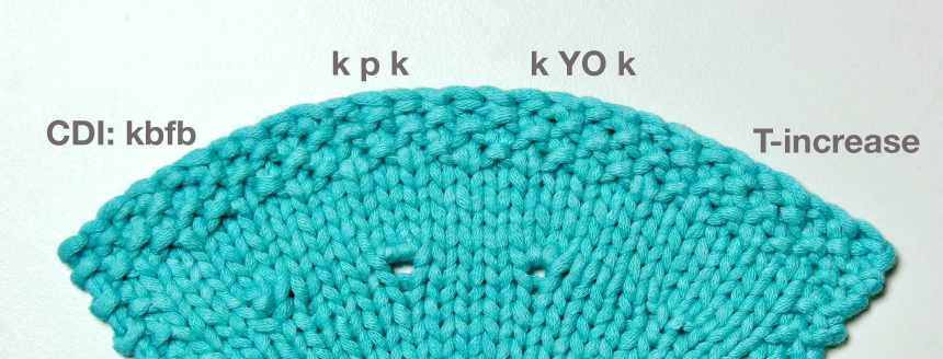 - 1. ktbl, k, ktbl – often called Central Double Increase (CDI) – knit through the back loop, knit into the front loop and drop the st off; pick up the vertical strand between two new sts and knit it through the back. This increase creates small knot in the centre. It is not absolutely symmetrical because the base stitch is twisted, but this reduces the hole. Mainly used in lace patterns, less so for stacked raglan line.